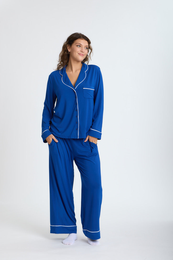 The Luxe Lounge Set redefines stylish loungewear with a cozy yet chic design. Made from soft, stretchy modal fabric, this set is breathable and lightweight for all-night comfort. The long-sleeve button-down top offers a classic yet relaxed fit, while the wide-leg pants provide effortless movement.